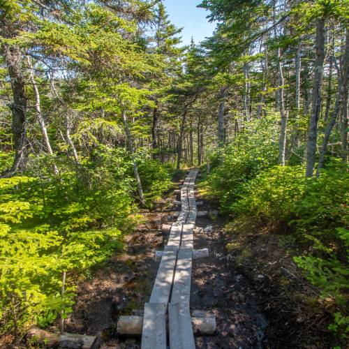 Crashing waves, wooded trails and a cliffside boardwalk await hikers at La Manche Provincial Park. The 50-metre long swaying La Manche suspension bridge was built by trail volunteers and straddles a cove where you’ll find remains of an abandoned fishing village. From the bridge, keep an eye out for puffins in the rocks above, and fishing in the sea below. Continue south along the Flamber Head Path, undulating through dense forest here in one of the more remote, underrated sections of the ECT. The trail rolls over wooded hills, headlands and cliff-faces with sweeping coastal views, including the dominant headlands of Cape Neddick and Flamber Head.